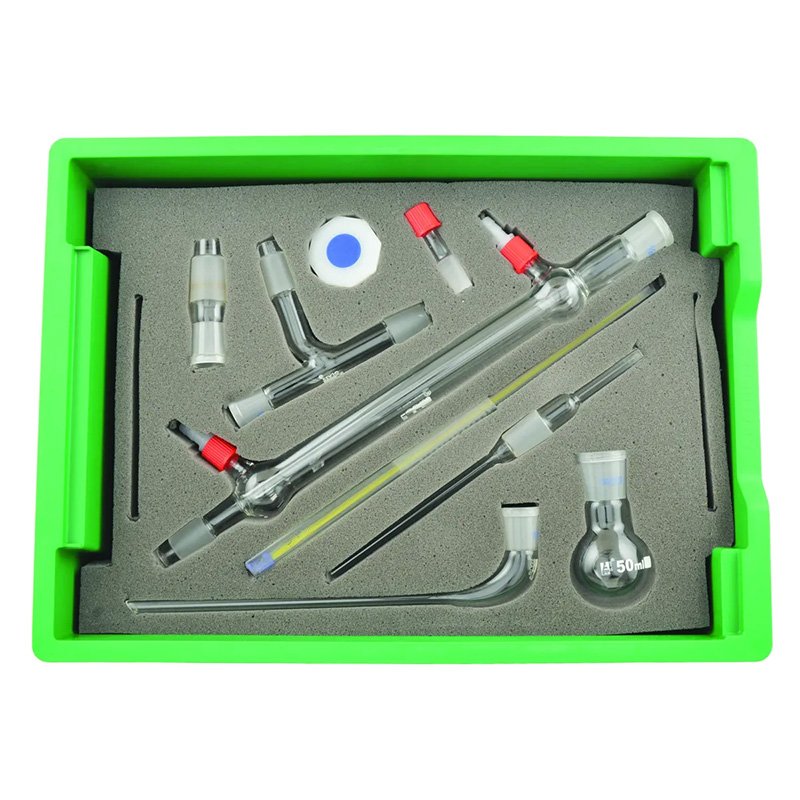 Philip Harris organinės chemijos distiliavimo rinkinys yra profesionalus ir kompaktiškas komplektas, skirtas eksperimentams su nedideliais organinių medžiagų kiekiais (iki 150 g). Visi 16 komponentų yra tvarkingai išdėstyti putplasčio įdėklo dėžėje, sudėtoje į vieną dėžę su dangčiu.