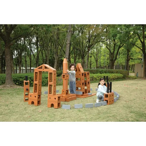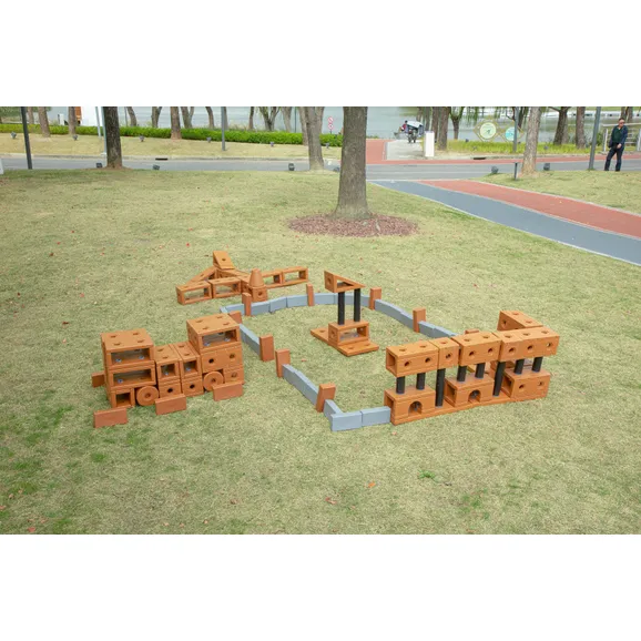 Rinkinį sudaro įvairaus dydžio detalės – nuo mažų rankai tinkamų elementų iki didesnių statybinių blokų su jungimo priedais. Tai puiki priemonė atviro tipo žaidimams, kuri skatina kūrybiškumą, problemų sprendimą ir komandinį darbą. Tinka tiek individualiems, tiek grupiniams žaidimams, kuriant įvairias struktūras, miestus ar peizažus.
